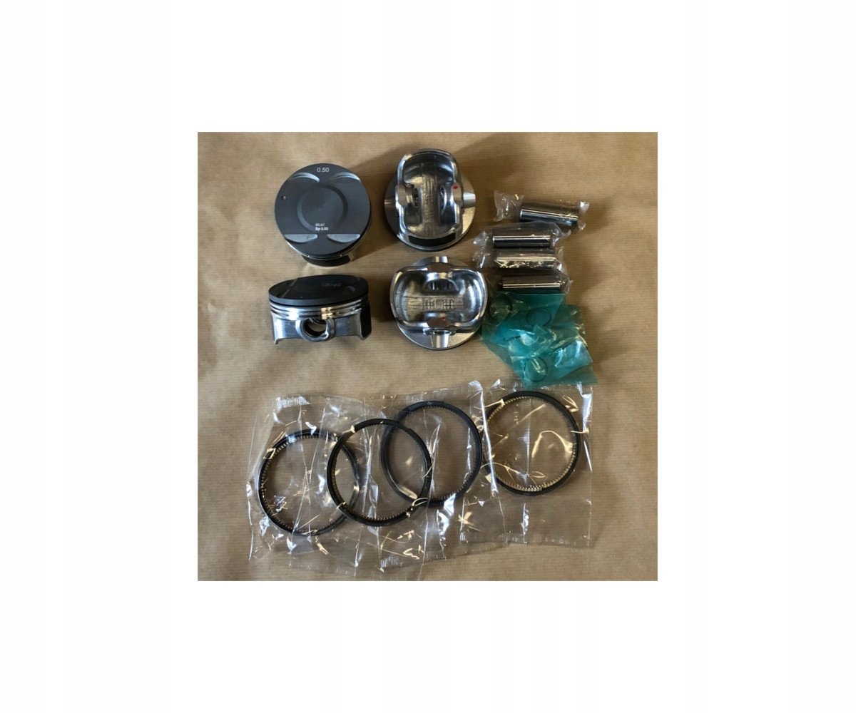 W zestawie znajdują się: 4 tłoki +0,50 z pierścieniami i sworzniami