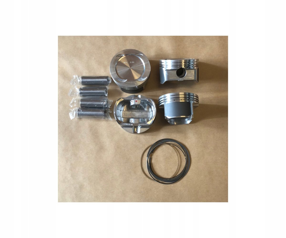 W zestawie znajdują się: 4x tłok +0,50 z pierścieniami i sworzniami